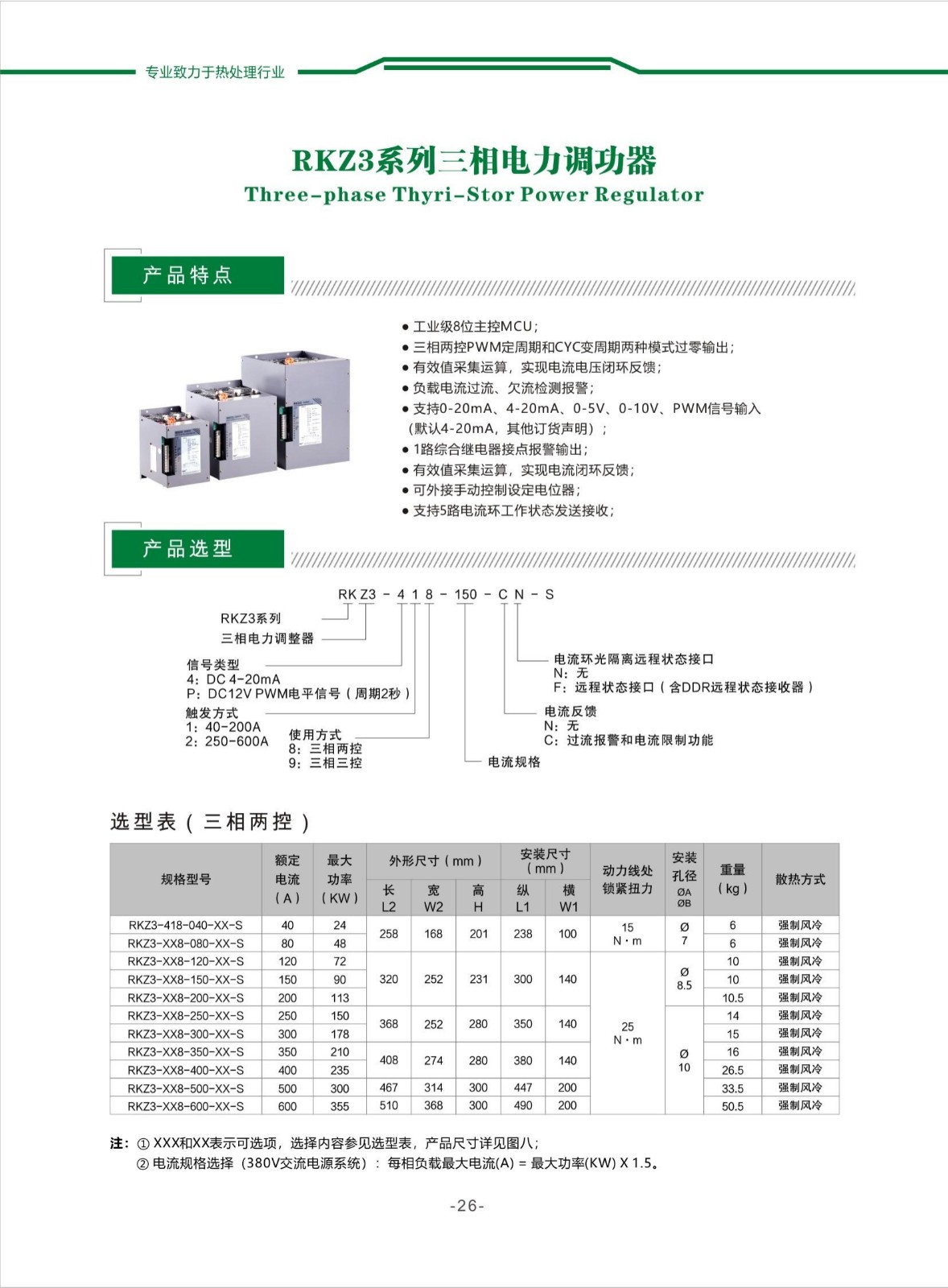 ★工业级32位ARM核主控MCU; ★三相两控PWM定周期和CYC变周期两种模式过零输出; ★有效值采集运算,实现电流电压闭环反馈; ★负载电流过流、欠流检测报警; ★支持0-20mA、4-20mA、0-5V、0-10V、PWM信号输入(默认4-20mA,其他订货声明); ★1路综合继电器接点报警输出; ★有效值采集运算,实现电流闭环反馈,支持5种电流环工作状态发送接收;